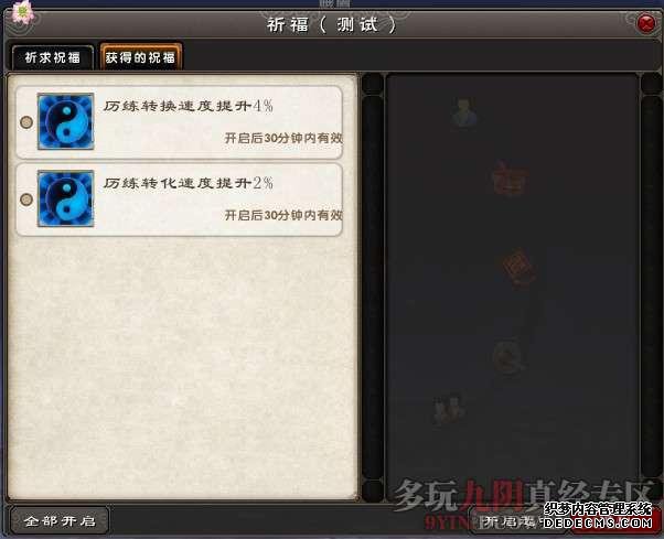 烈火战神BT版的祈福系统可以得到很多不同的BUFF效果。